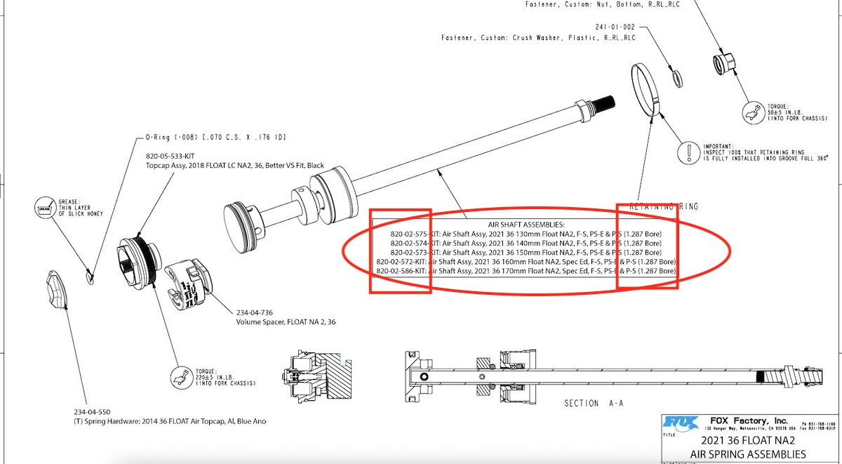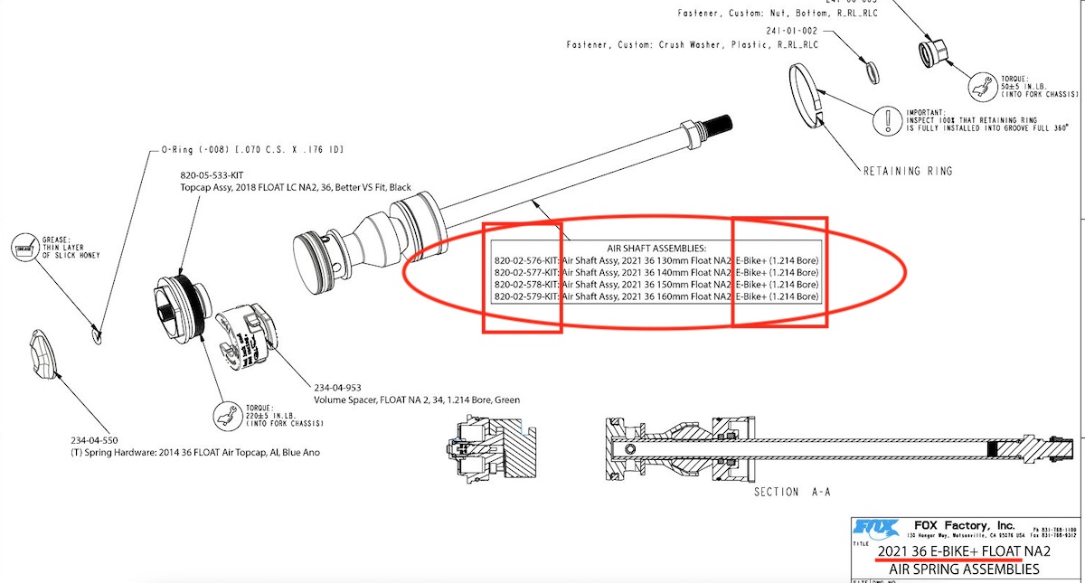 La Fox 36 dedicata alle e-Mtb ha gli steli esternamente sempre da 36 mm ma l’interno è quello della Fox 34.