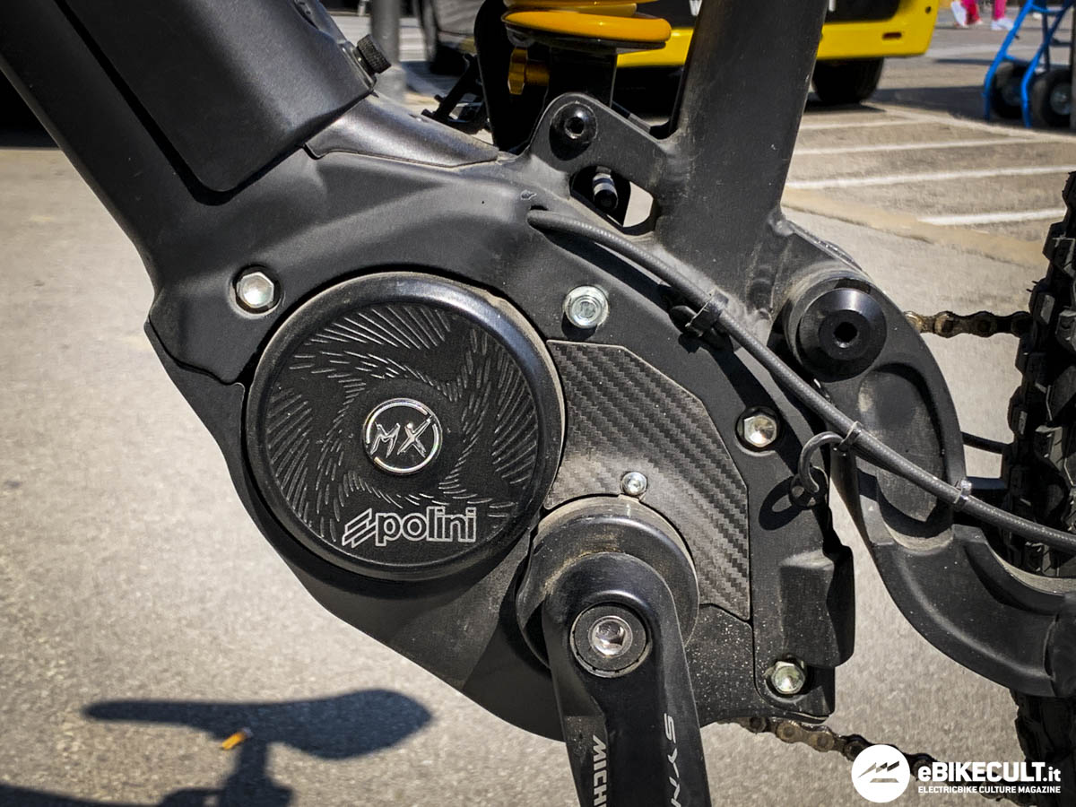 E’ disegnato intorno al motore Polini E-P3 MX, quindi la batteria di serie ha una capacità di 500 Wh.