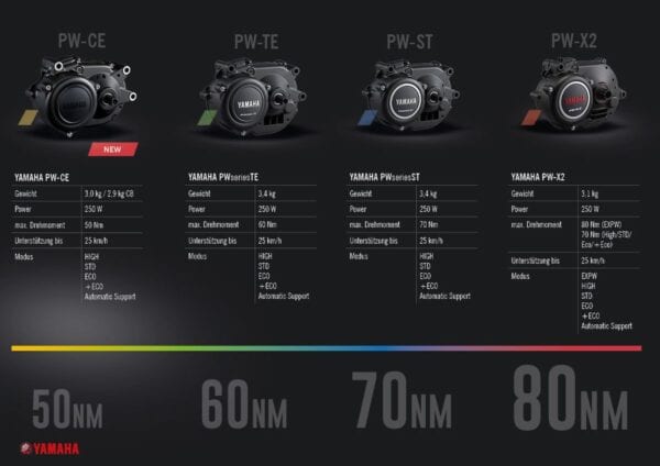 – Motore: Yamaha PW-ST, 250W, 70Nm