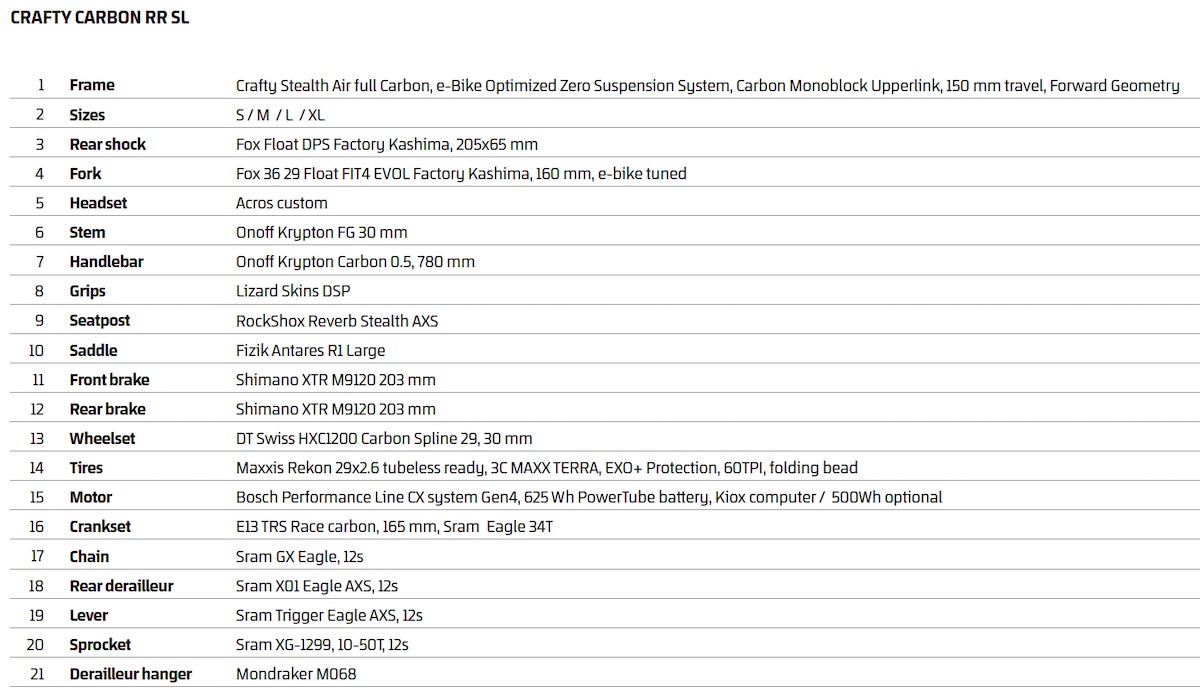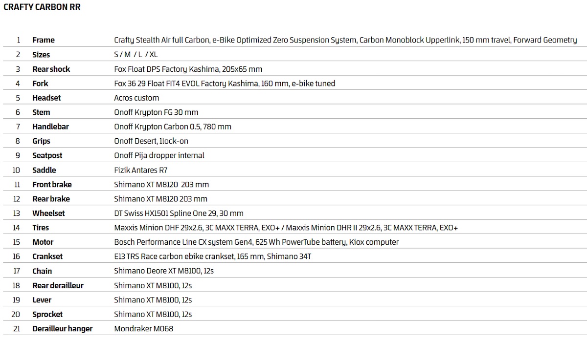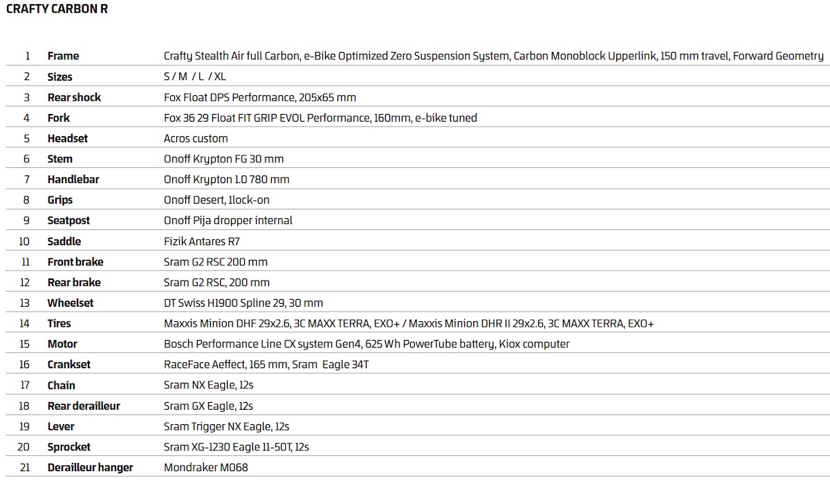 – Tre modelli: Crafty Carbon RR SL, Crafty Carbon RR, Crafry Carbon R
