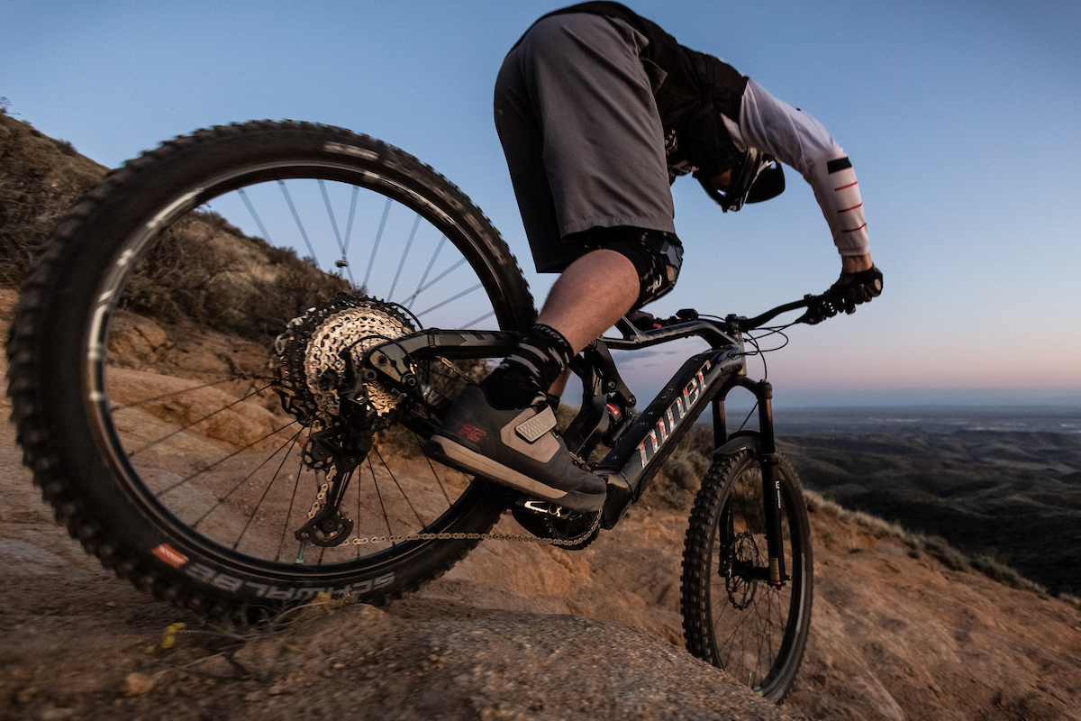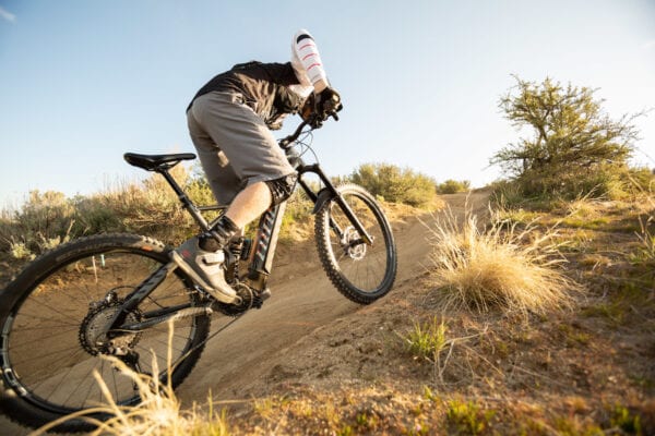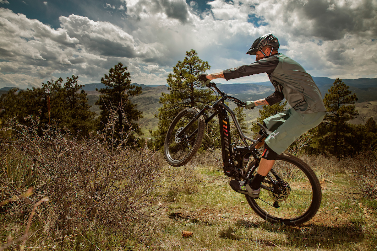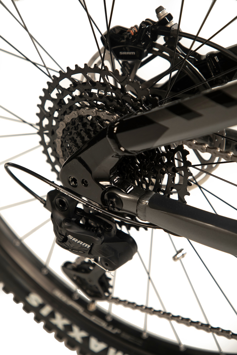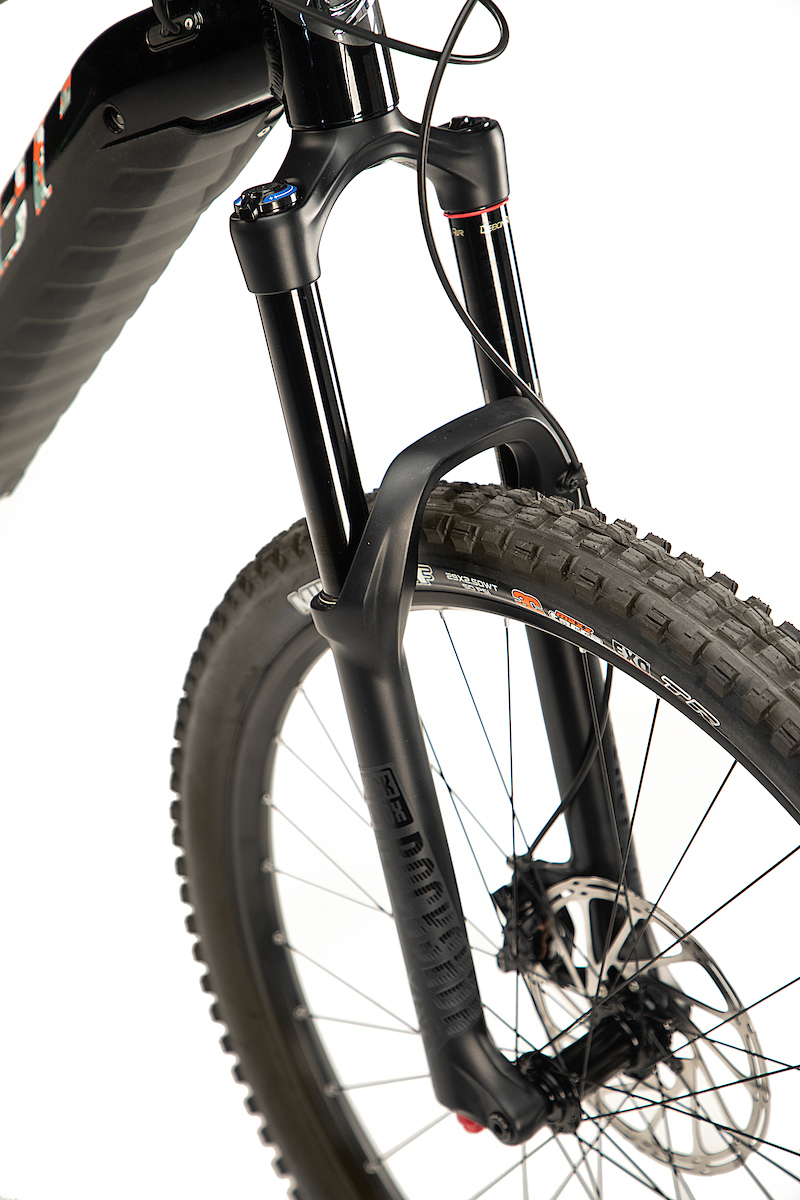 • Travel posteriore di 150 mm con ammortizzatore ad aria, forcella da 160 mm, ruote da 29″ anteriori e posteriori.