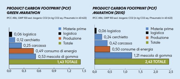 Infatti, la maggior parte delle riduzioni di CO2 nel Green Marathon è dovuta all’utilizzo di materie prime riciclate e rinnovabili. Lo pneumatico è il primo prodotto ad utilizzare il 100% di nerofumo riciclato (rCB).