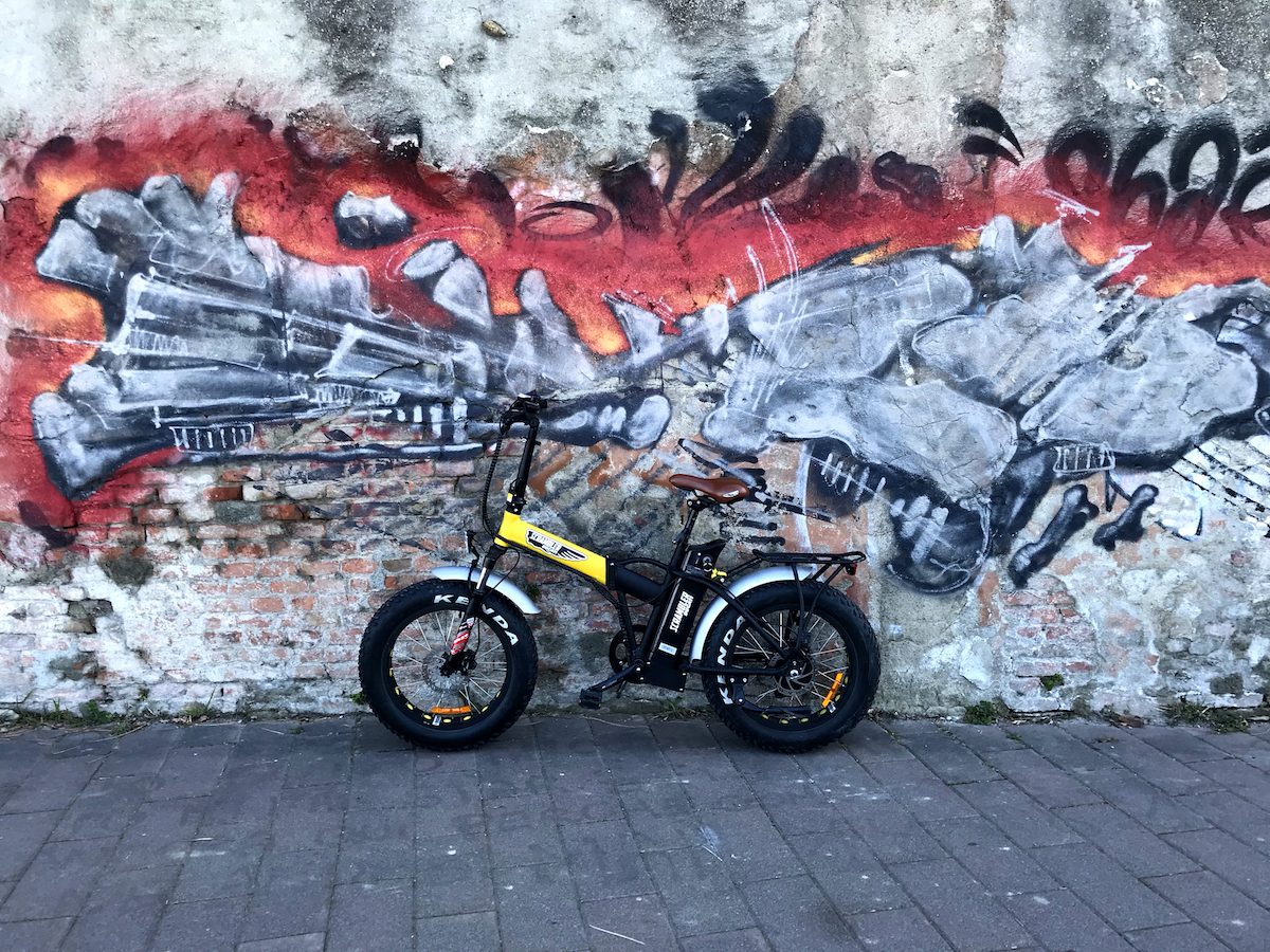 Le ruote fat, assemblate con ammortizzatori Mozo e freni a disco Tekro, portano il comfort di guida ad un altro livello, garantendo controllo e sicurezza di guida. Il tutto sottolineato dal lieve e piacevole sibilo dei tacchetti degli pneumatici mentre aggrediscono il suolo.