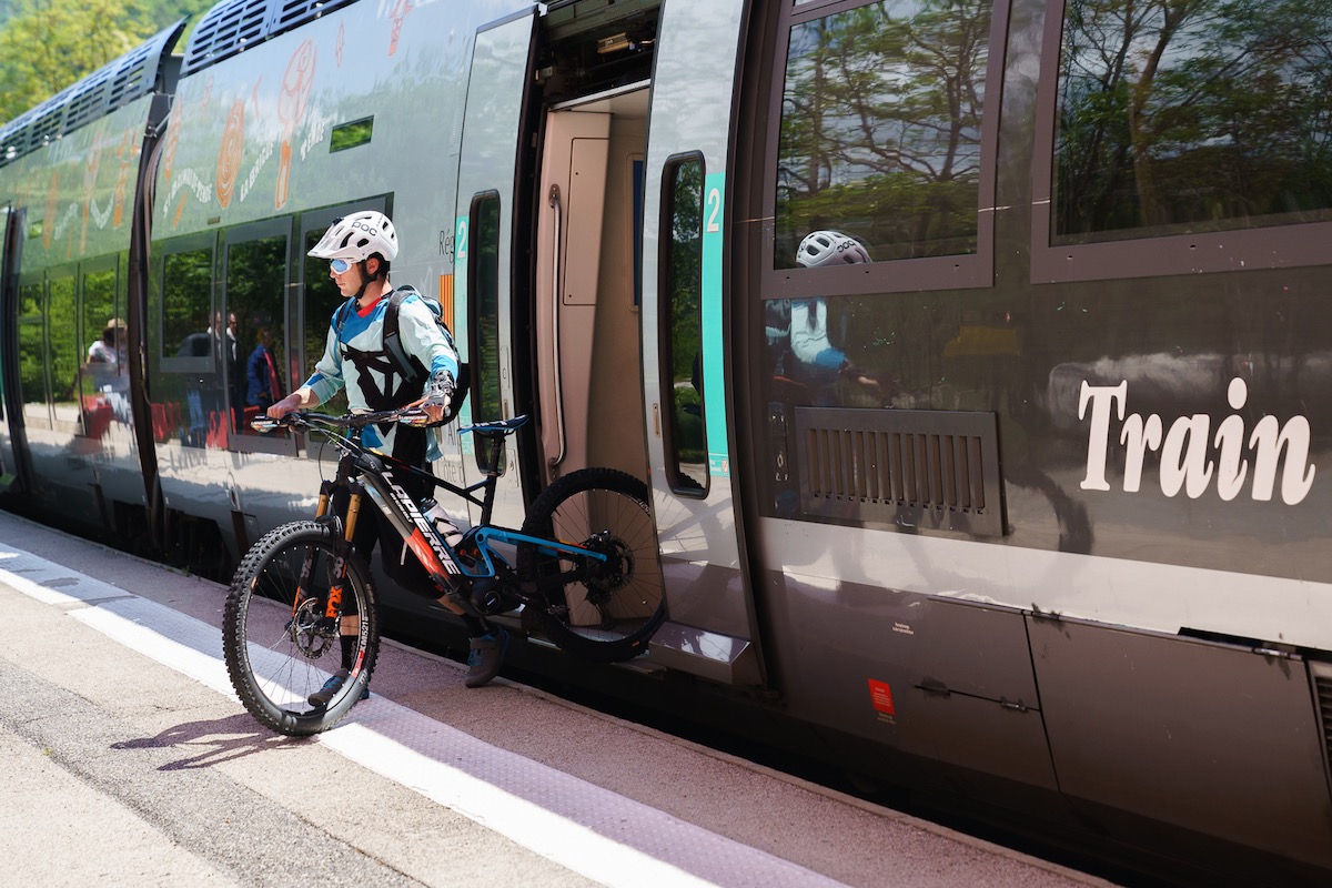 Una delle cose migliori per gli appassionati di mountain bike nel posto dove vivo è il sistema dei treni. Dato che le e-bike sono ancora limitate dalla durata della batteria, con il treno puoi esplorare molto più lontano di quanto potresti altrimenti – ci sono persino portabiciclette sui treni quindi con un paio di euro puoi trasportarla facilmente.